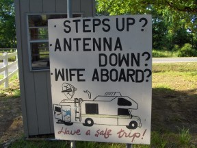 This is a sign we saw when we were leaving a campground just outside of Little Rock Arkansas. It’s a good thing I saw it because I forgot Dawn and both dogs!!